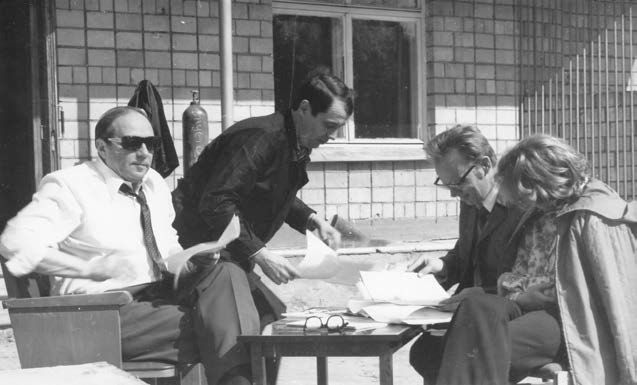 ![]() Н.М. Эмануэль, В. Горьков, Г.Н. Богданов, Н.П. Коновалова. Около корпуса 2/4, апрель 1976 г. |